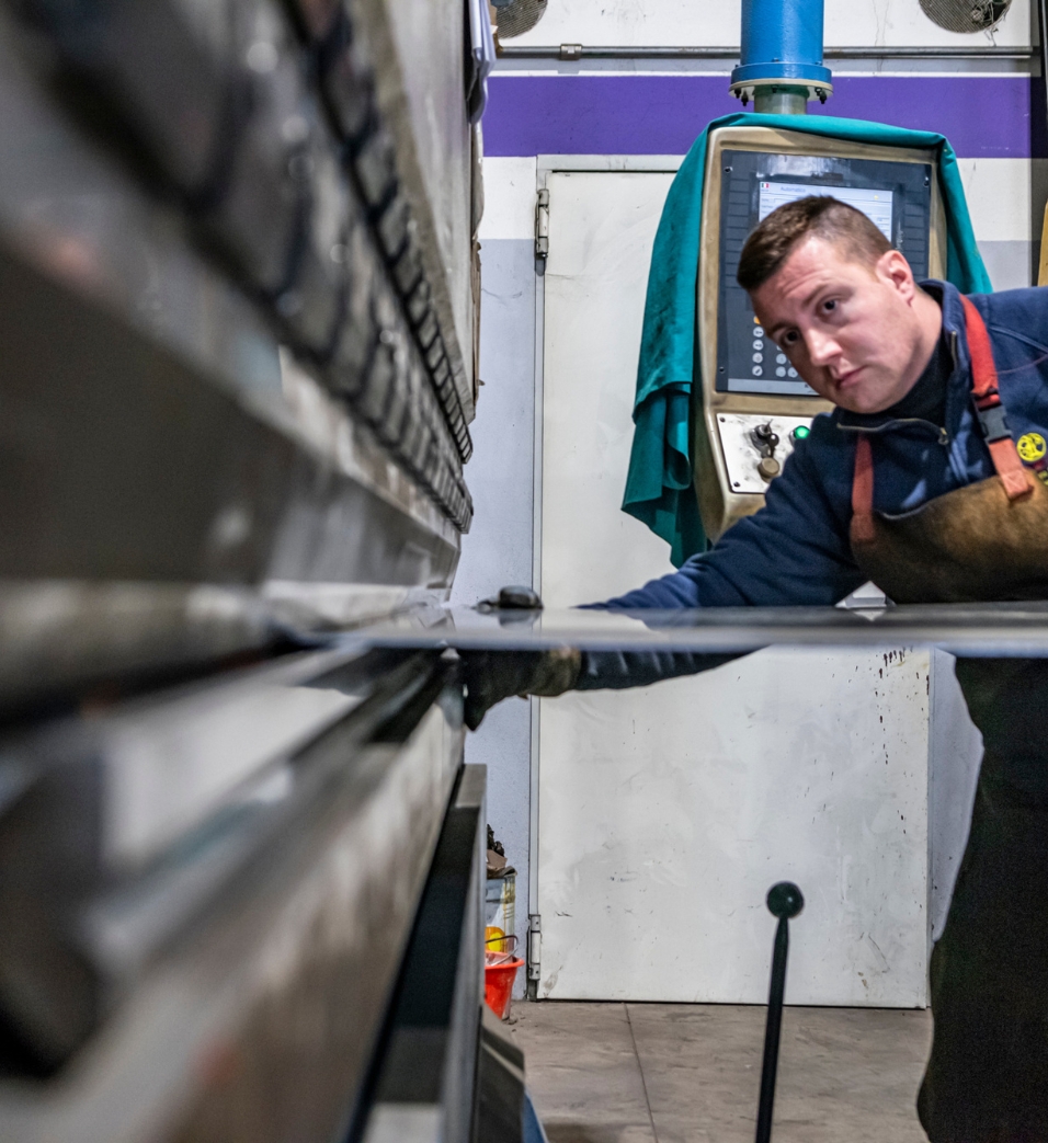 Dopo il taglio, il processo continua nel reparto di Piegatura, dove sono disponibili diverse piegatrici di ultima generazione.