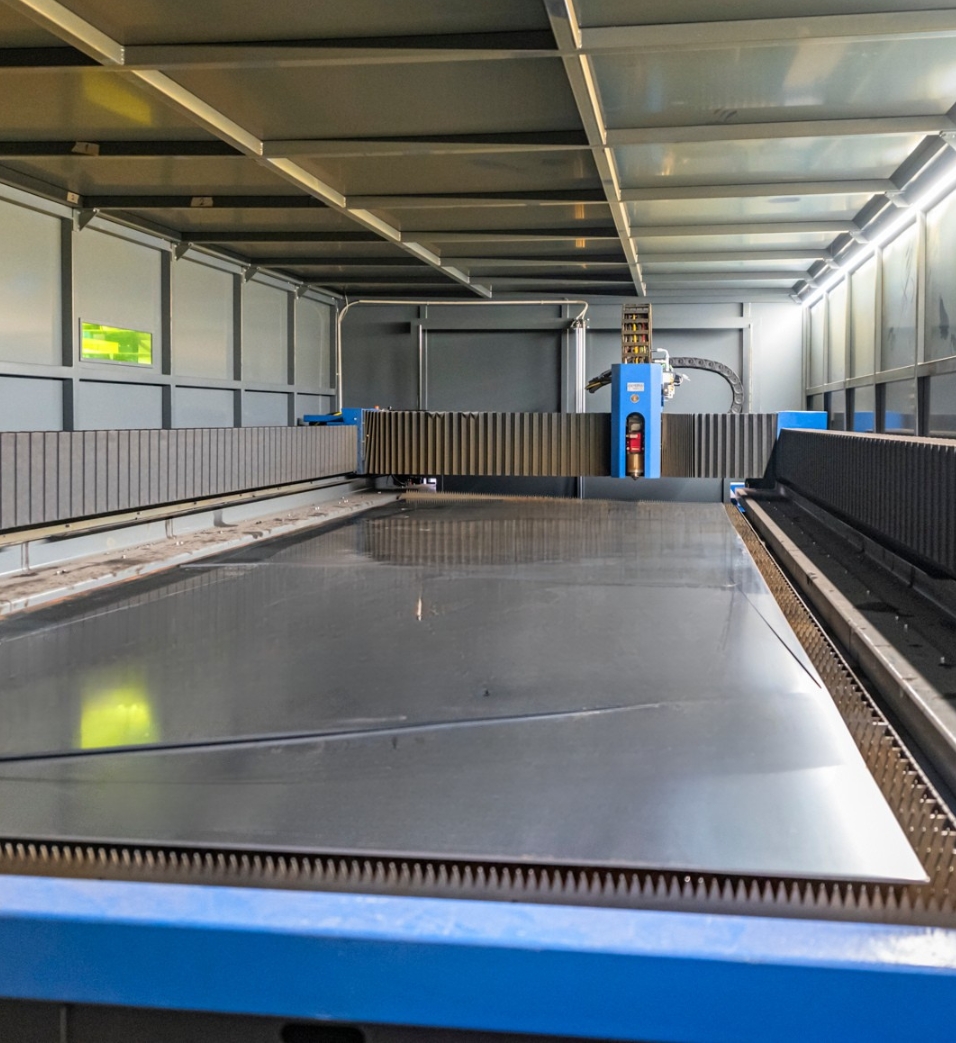 Dopo la fase di progettazione, il disegno tecnico viene inviato al reparto di taglio laser, dove operiamo con un macchinario Opera Fiber all’avanguardia.